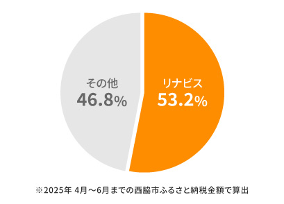 西脇市のふるさと納税寄付額の53.2%をリナビスが占めています。