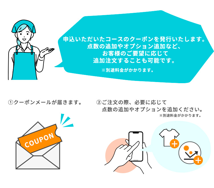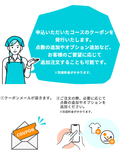 お申込みから1週間以内に、お申込みコース料金分が割引になるクーポンコードをメールにてお送りいたします。「さとふる」をご利用の方へは、郵送にてお送りいたします。