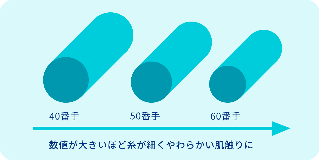 細い糸のほうがより高密度に織ることができるので、柔らかく肌触りのいい生地になります。