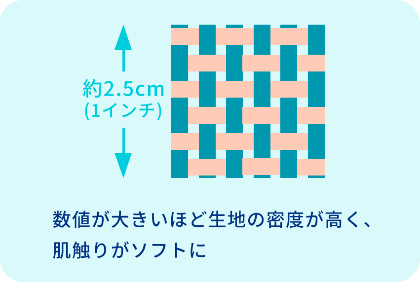 打ち込み本数が多いほど、細い糸を使っていることになり、そのため生地の密度が高く、肌ざわりがソフトになります。