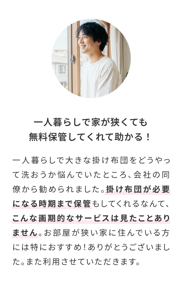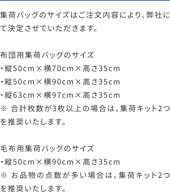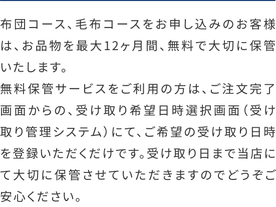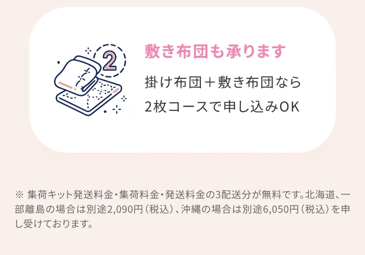 ※クイーンサイズ・キングサイズの布団はお申込いただけません。