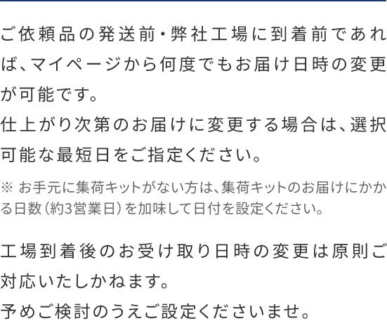 ※ お急ぎの方には保管なしのコースもご用意しております