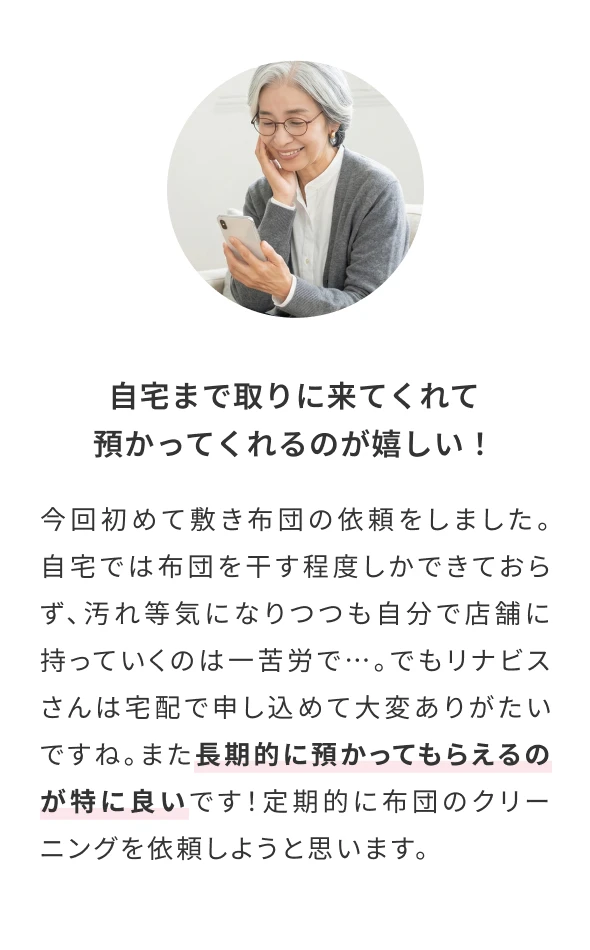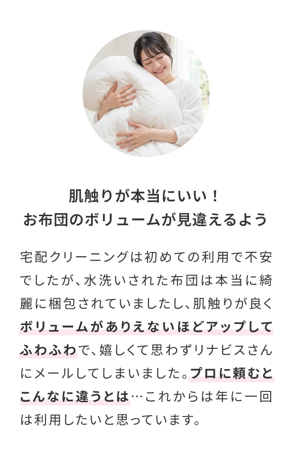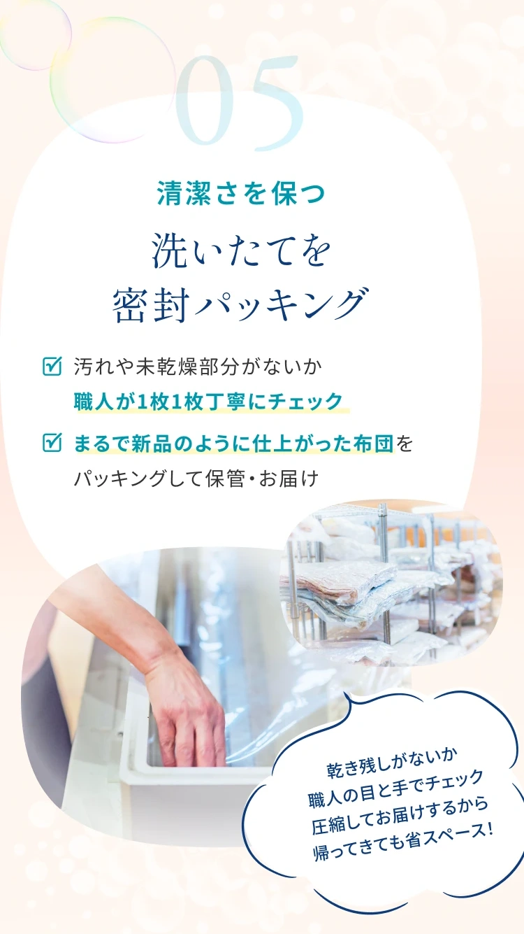 ※ 返品となりました布団は、他のクリーニング完了した布団とまとめてお返しいたします。